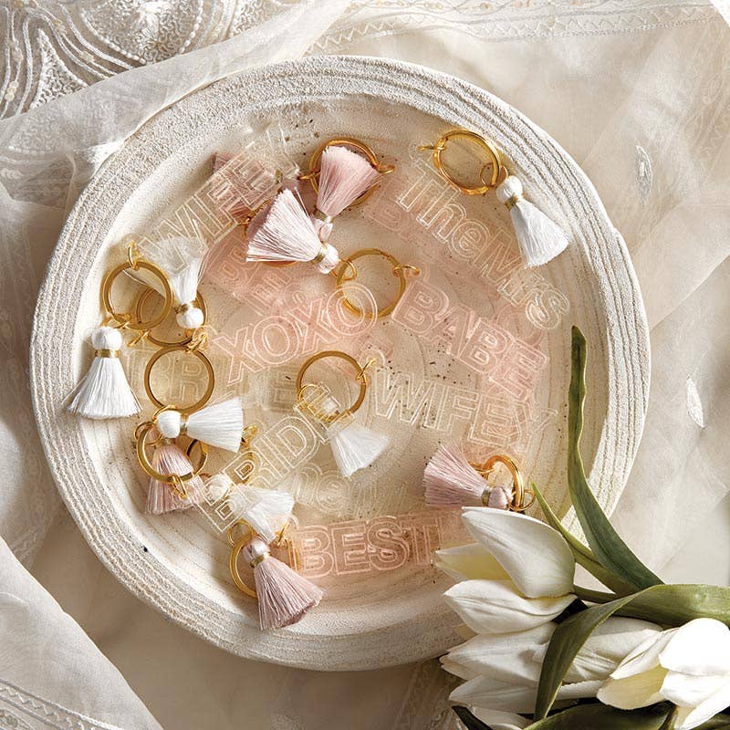 The perfect motivation to grab your keys and head out to start your day! These stylish acrylic keychains come with a colorful tassel and let the world know she is a Bride.