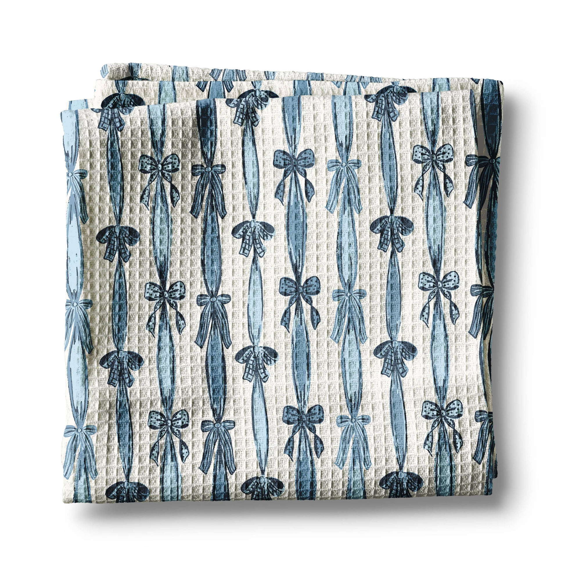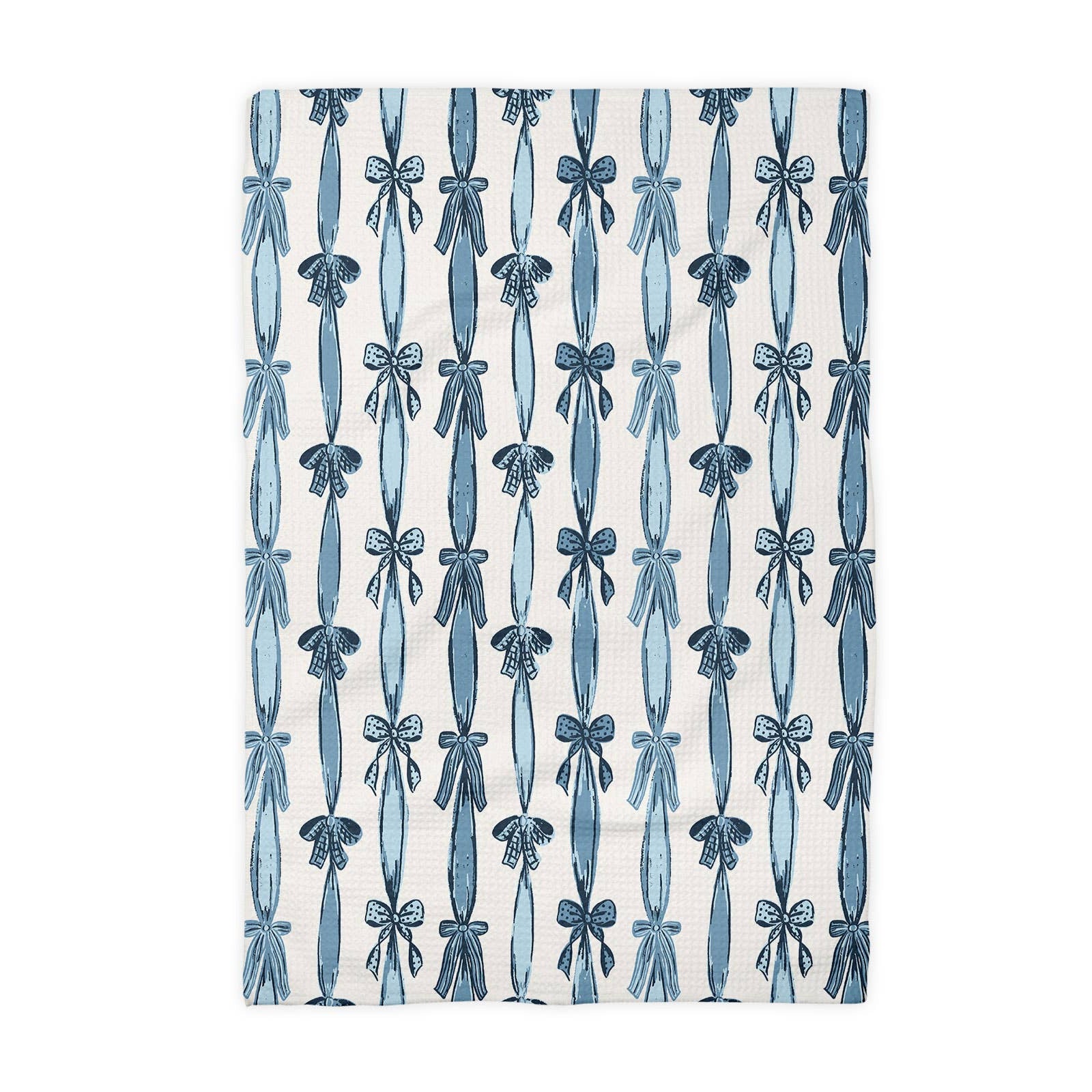 The raised looped edges on this lint free towel make it great for all around use, while also being great on glass. easter, tea time, chinoiserie, blue and white decor navy bow preppy wreath ribbon