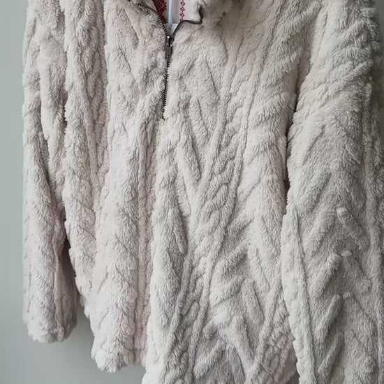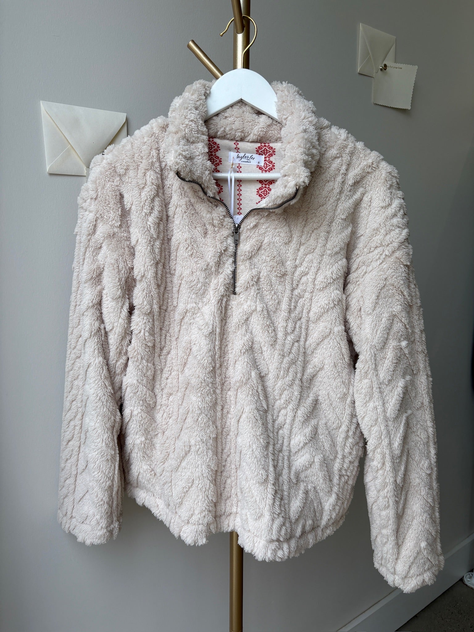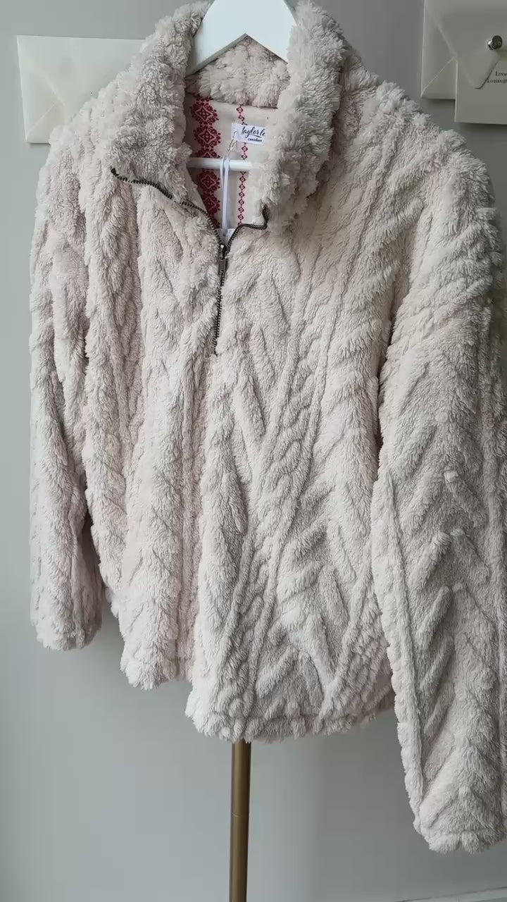Stay cozy while standing out in our Fuzzy Half Zip-Up Pullover Jacket with Print Contrast Lining—the perfect blend of comfort and statement style. Crafted from ultra-soft fuzzy fabric, this pullover delivers warmth without the bulk, making it ideal for cool mornings, travel days, or casual weekends. The half-zip neckline allows for adjustable comfort, while the eye-catching printed contrast lining adds a playful, elevated touch.